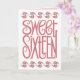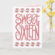 "Söta Sexton", omgiven av vackra rosa persikofärgade bladkronor. Den perfekta presenten för att önsk en familjemedlem eller nära vän en Glad 16-årsdag eller att använda som inbjudan till en fest. Vacker matchande kort, vykort, frimärke, klistermärken, magneter, knapp, nyckelring, muggar, musmattor, väska, förkläde, t-shirts.