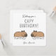 Söta simmande kapybara illustration födelsedagskort design med typografi uttryck: "Önskar dig en kapy födelsedag!". Kapybara-illustrationen är en original digital konst skapad av @artbybiyan.