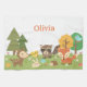 Designen kommer med en mängd olika skogsdjur som inkluderar en hjort, en ekorre som håller i en ekollon, en hoppande kanin, en tvättbjörn, en igelkott, en räv och en fågel på trädet. En välkomnande vårskogs bakgrund med träd, vita prästkragar, röda blommor och prickiga svampar. Personliggör med barnets namn.