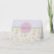 Ett tackkort med den nedre halvan dekorerad i ett roligt mönster illustrerat med bedårande rävar, söta småfåglar och fantasifulla gröna träd. Den övre halvan har en lavendel-lila bakgrund med en linneaktig textur. I mitten finns en pastellgrön banderoll med en rosa cirkel överst som innehåller orden: Tack. Jag tycker att detta pittoreska mönster i barnkammarstil är riktigt sött och påminner mig om de lyckliga stunder som tillbringats i naturen.
