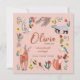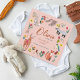 Vi presenterar lilla babyflicka tillkännagivande med söta skogsdjur, blommor och fåglar. Originalkonst av Caroline Bonne Müller