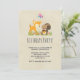 En födelsedagsinbjudan med en söt illustration som visar en liten hjort och en liten ekorre som håller en ekollong och en fjäril som flyger ovanför deras huvuden. Dessa bedårande skogsdjur står på lite gräs med några fantasifulla svampar vid fötterna.