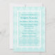 En söt inbjudan till baby shower för en fin liten pojke med en pastell blå rutmönstrad bakgrund, prydd med söta små babysteg och ett trendigt blått band som är knutet i en rosett. Framsidan lyder: Itsy bitsy babysteg. Hon väntar en pojke, så sött. Anpassa genom att lägga till namnet på den blivande mamman. Del av en matchande baby shower-serie. Platt bild, inte riktigt band.