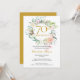 Med en delikat akvarell blomsterkrans, kan denna stilrena botaniska 70-årsdag inbjudan anpassas med din speciella dag information. Baksidan har en matchande blomsterkrans som ramar in dina initialer i elegant guldbokstäver på en gyllene bakgrund. Designad av Thisisnotme