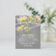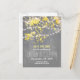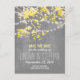 Grå och gula rustika save the date vykort med söta och flotta blommande trädgrenar och hängande ljusslingor. Perfekt save the date för utomhusbröllop.