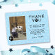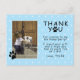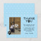Söta tassavtryck Blå födelsedags tack foto vykort för barn. Sött foto födelsedag tack kort med tassavtryck, tack meddelande, en foto mall och ett barns namn. Bakgrunden är blå med ett vitt prickmönster. Infoga ditt foto i mallen och gör det personligt med ditt namn. Ändra eller lämna tackmeddelandet.
