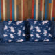 Söta tecknade elefanter mönster på marinblått kudde