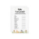 Tittar du att perfekten ska lägga till charm och roligt till babyduschen? Vi presenterar vår "Baby Traits Ord Scramble"! Det här spelet är förtrollat med söta trädsdjur. SVAR NYCKEL: 1.Crib 2.Mamma 3.Diaper 4.Mjölk 5.Changing Mat 6.Carsit 7.Rocking stol 8.Nalle 9.Nappar 10.Lotion 11.Bok 12.Play Pen 13.Footed Pajamas 14.Formula 15.Diaper Bag 16.Baby Grind 17.Formel 17.Flaska Swaddle 18.19.Hydrerad handduk 20. Rattle