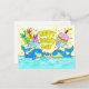 Den här söta födelsedagskortet har en familj av valar som firar den lilla en födelsedag med en stor födelsedagstårta och massor av presenter. Skicka det här roliga födelsedagskortet till vänner och familj för att gratulera dem på deras födelsedag eller använd det som en rolig inbjudan till födelsedagsfest. Ett bra kort för både barn och vuxna.