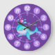 Barn som är lysande lila, klocka i valkonsväggarna. Den här färglösa, söta roligtens klockor innehåller minuter och timmar för att hjälpa till att få barn att leka med att säga tiden. Konstruktion och vattenfärgsmålning av Sarah Trett. Ett underbart tillägg till ett valhav i barn eller vatten i det tematiska sovrummet. Idealisk för barn som lär sig att läsa en klocka ansikte.