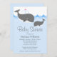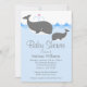 En bedårande val-tematisk födelsedagsinbjudan med en grå moder-val och hennes kalv i en blå ocean. Perfekt för en baby shower för pojke, flicka eller könsneutral. Lätt att anpassa för din fest.