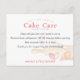 Skicka ut varje tårta med förtroende med hjälp av ett Cake Care-kort som förklarar kylskåpstid och bästa ögonblick för servering, i en snabb och vänlig läsning 🎂