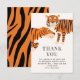 För den lilla som har firat sin födelsedag eller någon annan högtid och vill skicka ett tack till gästerna. Om din lilla är förtjust i safari- eller djungeldjur och särskilt tigrar, är det här tackkortet perfekt. Du kan inkludera ett tack till dina gäster från din lilla tiger. Texten "TACK" kan behållas som den är eller redigeras till text med samma längd. Den andra texten kan redigeras till valfri text. Tigertema tackkort för den lilla tigern i ditt liv.
