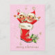 Söta Vintage Retro Jul Tomte PINK Vykort
