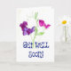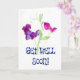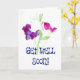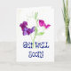 Ett söt "Hämta bra"-kort med rosa och lila söta ärter från en vattenfärgsmålning av Judy Adamson. Skrivartexten är mörk blått och insidan lämnas tom för ditt eget meddelande. Se även matcha presenter och kläder.