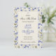 Blommig Spara datum-kort för bröllopet med blå sötblommor på crèmefärgad bakgrund