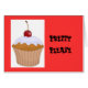 Hälsningkort - söten behar med ett stort rött körsbär överst