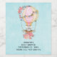 Babydusch eller andra evenemang med vin flaska-etiketter med ett snyggt mönster med en vattenfärgad illustration. En luftballong dekorerade med söt rött och rosa blommor. En söt liten vit björn i baby ligger i basket. Ljusblå bakgrund.