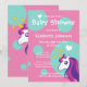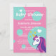 Kute till babyduschning för nyfödd bebis-flickan. Anpassningsbar party inbjudningskort med små hjärtan och magisk häst. Mall för babydusch med rosa och turkosa blå pastel färg. Fin snyggt-typografi med små kärlek-ikoner. Anpassningsbar text med OSA- och registerrad. Kort till din lilla prinsessa dotter eller barndotter. Klassmässiga pappra utformningar för gravida kvinnor eller mamma för att bli gravida.
