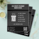 En svart & vit Enkel och minimalistisk folder för sotningsservice eller skorstensunderhåll. Den innehåller en QR-kod, fullständig kontaktinformation dekorerad med ikoner och en lista över tjänster!