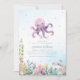 Roligt och toppen, söt bläckfiskduschinbjudan. En vacker bläckfisk är i centrum i den här vattenfärgen inbjudan. Det finns också en leende haj som går ut från hörnet och små havshästar i en korallrev! Detta charmerande inbjudan är perfekt för ett hav eller ett hav som kallas party. Se samordna saker i vår butik, Enchanted Finch...