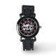 Cute skalle och korsben med båge omges av rosa hjärtan.