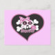 Den här söta skallen och korsbenen med rosa poka prick och lollipop sätts på ett hjärta och är ett fint vykort som alla kommer att ha kärlek.