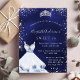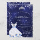 En modern, snyggt och glamorös inbjudan till en svensk 16, 16:e födelsedagsfest. En midnattsblå bakgrund med faux silver glitter damm, en tiara och en klänning. Den blå färg är ojämn. Namn är skrivet med ett modernt handskript i stil. Anpassa och lägg till information om party.