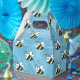 Den lilla kuttiga bin teckning. Anpassningsbarnas blå vattenfärgsförmånslådor. Tanken på babydusch.