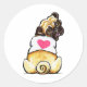 Från Andie ursprungliga illustration av bläck och färgpenna subjekt, med en mörk maskerad fawn Pug med en liten tätting med ett rosa hjärta. c)2014 Andie.