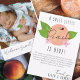 Vi presenterar vår lilla Peach-Tack Birth-annons, en hjärtslitande blandning av tacksamhet och firande designat för att välkomna din lilla persika i världen! På framsidan anger en charmerande, söt persikobild tonen för detta hjärtliga tillkännagivande, som visar det ömma nyfödda barnet när det kommer. Men magin händer verkligen på baksidan, där din nyfödds dyrbara bild styr föreställningen. Med det här personligen fångas ögonblicket upp i sin söta form, och din baby-vänliga bild kombineras med ett kärleksfullt tacksamhetsbudskap. ditt uppriktiga tack för det varma önskemål och det stöd du fick, samtidigt som du med glädje presenterade din lilla persiko för vänner och familj.