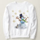 Kvinnotröja i Snögubbe med snögubbe, fågel, snöflingor och kanin.