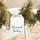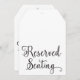 Den här enkla, vackra stora märkrn kan användas med ett eget band eller en egen sträng för att markera reserverade sittplatser vid bröllop eller evenemang. Se till att beställa utan kuvert. Inget menyfliksområde eller sträng ingår.
