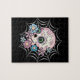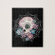 Dia de los Muertos (Day of the dead), sockerskalle designad i pastel färg med blommor på ett spindelnät.
