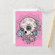 Dia de los Muertos (Day of the dead), sockerskalle designad i pastel färg med blommor på ett spindelnät.