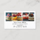 Visitkort med bilder av söta kakor och efterrätter på dina anpassade bakgrundsfärger. Vacker för ett sött bageri eller efterrät catering företag.