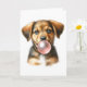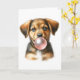 Söt akvarellkonst av en brun valp som blåser bubbelgummibubblor på detta tomma vykort.