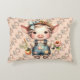 Sött Farmcore-Gris i Overall med Blommor Prydnadskudde