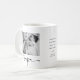 Fira de fredliga faderstunderna med den 'Eleganta Första Fars Dag Anpassad Fotokollage'-muggen. Varje klunk blir en nostalgisk påminnelse om de första dyrbara ögonblicken och leenden som delas med din nya baby. Denna mugg är mer än bara ett kärl för din morgonkaffe - det är en vacker samling minnen för nya pappor. Designen har två fotografier av den nya pappan och bebisen med texten 'Första Fars Dag som Pappa', ett personligt meddelande och namn.