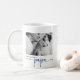 Fira de fredliga ögonblicken av faderskapet med 'Elegant Första Fars Dag Anpassad Fotokollage'-muggen. Varje klunk blir en nostalgisk påminnelse om de första dyrbara ögonblicken och leenden som delas med din nya baby. Denna mugg är mer än bara ett kärl för din morgonkaffe - det är en vacker samling minnen för nya pappor. Designen har två fotografier av den nya pappan och bebisen med texten 'Första Fars Dag som Pappa', ett personligt meddelande och namn.
