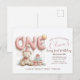 Sött första födelsedagsinbjudande med teddybjörn och ballonger vykort