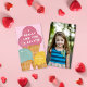 Det här moderna och söta Alla hjärtans dag-fotokortet har en blek rosa polka-punktbakgrund med söta illustrationer av gelatonekon. Hälsning på framsidan säger: "Jag tycker om en gelato för dig." Kortets baksida har ett foto, som också kan tas bort om du vill. Den här lilla storleka är perfekt för alla hjärtans klassrumsutbyten!