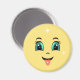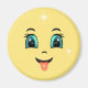 Söt gul glad ansikte emoji Magnet. Modern glad ansikte tecknad som påminner oss att starta dagen med ett leende och med goda ord med hjälp av vår tunga. Le och världen kommer att le med dig! Njut av denna glada ansikte emoji eller ge denna glada ansikte magnet som en liten present för att lysa upp dagen för någon annan.