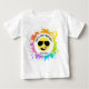 Gör varje födelsedagsbit till en fest med vår gula lyckliga ansikte-aviator T-shirt. Varje skjorta har ett stort, glatt gult leende ansikte som bär en cool svart aviator-solglasögon, ler från öra till öra och sprider goda vibrationer till alla på festen. Den yttre kanten är målad med färgglada färgstänk och täckt med gnistrande guldglitter, vilket skapar en festlig, konstnärlig look som garanterat lyser upp varje fest. Anpassa den med ditt barns namn och ålder!