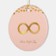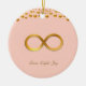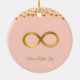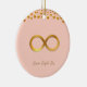 Sött gyllene oändlighetssymbol och prickar på korallrosa bakgrund keramisk prydnad. Kärlek ljus och glädje text kan anpassas.