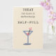 En akvarell- och blandteknik-illustration av ett cocktailglas, halvfyllt, med budskapet: "Idag är glaset definitivt halvfyllt!". Meddelandet inuti är: "Jag önskar dig en cocktail av goda saker på din födelsedag!". Personliga mallar: avsändarens och mottagarens namn. Detta söta födelsedagsgratulationskort är perfekt för din bästa vän, en bekant, din chef eller någon annan person, för formella eller mindre formella kontakter. Designen är en del av "Glasset halvfyllt"-födelsedagskollektionen som inkluderar mönstrat presentpapper, presentpåsar och roliga presenter.
