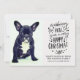 Fransk bulldogg valp glad jul semesterkort för en familj. Anpassad bild. Du kan använda detta foto eller använda ditt eget hundfoto. Sätt din hund i centrum i din familjs julkort i år.