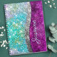 Gör skolstarten rolig med denna söta personliga anteckningsbok. Den är designad med elegant flickaktigt silver och iriserande falskt glitter i enhörning, regnbåge, teal, akvamarin, fuchsia och grönt.