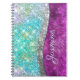 Sött iriserande lila turkos falskt glittermonogram anteckningsbok