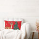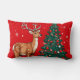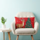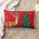 Ljus röd julkudde med mysig renillustration och ett dekorerat julträd, perfekt för säsongsinredning, accent till vardagsrum, presentidéer och festlig vinterstil.
